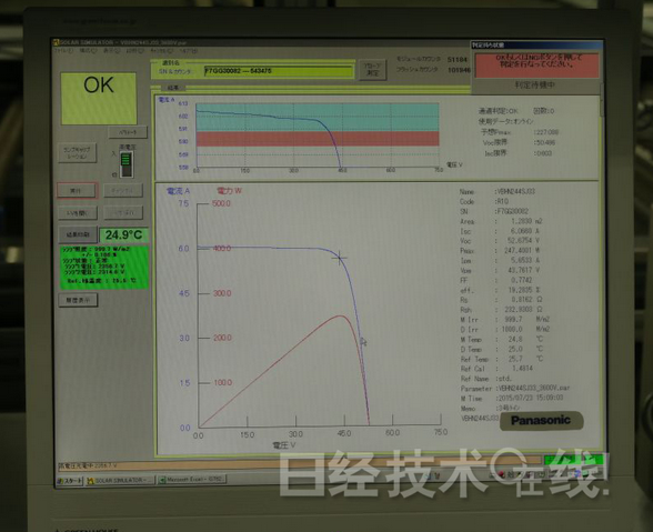 在(8)電氣特性檢查中,松下將額定輸出功率值設(shè)定為合格品的最低值。該公司表示,“HIT系列中沒有功率低于額定值的產(chǎn)品”。另外,按照光伏發(fā)電模塊的JIS標(biāo)準(zhǔn)規(guī)定,輸出功率值達(dá)到額定功率的90%以上即為符合標(biāo)準(zhǔn)。