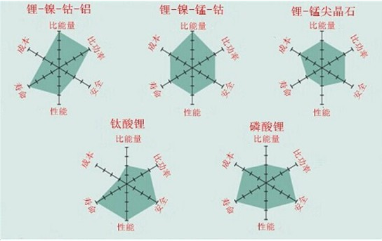 電動動力系統(tǒng)中沒有理想的競爭者,因此鋰電池仍然是一個很好的選擇。圖1示出了5種備選電池,其中鋰鎳錳鈷(NMC)電池、磷酸鋰電池和鋰錳電池具有一定的優(yōu)越性。在消費(fèi)類電子產(chǎn)品中最流行的鈷酸鋰電池(未列出)這種最高的能量密度的“電腦電池”雖然被特斯拉和Smart Fortwo ED用作電動車的電源,但由于其高昂的價格等劣勢并不適合大量應(yīng)用的在一般電動車中。人們需要在安全性、比能量、成本和高溫性能等方面做出折衷的選擇。