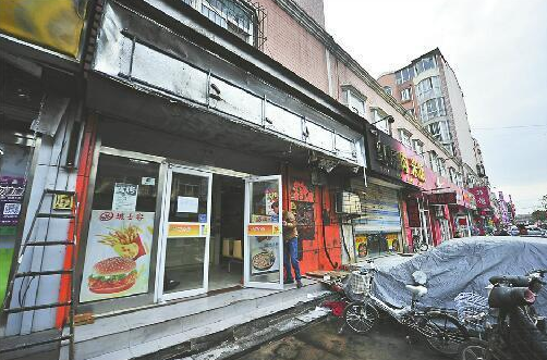 這次連帶遭殃的還有劉女士門頭房東鄰的三家店鋪。最南側(cè)的一家快餐店招牌被燒了大半,中間的漢堡店整個(gè)牌匾被燒光,北端一家藥店招牌部分受損。“還有2臺(tái)空調(diào)外機(jī)也被燒毀了。”劉女士說,損失10多萬元。