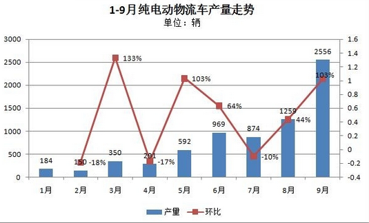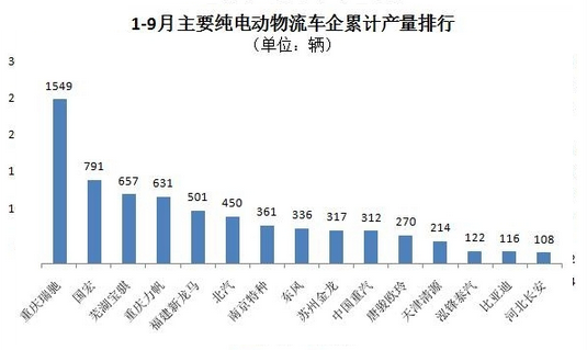 國家郵政局公布的郵政行業(yè)運行情況顯示,今年1-9月全國服務企業(yè)業(yè)務處理量達到137億件,同比增長46%,再創(chuàng)歷史新高??爝f企業(yè)對專用新能源物流車輛的需求不斷增加,快遞企業(yè)將成為新能源物流車輛的主要市場。此外,中央和地方兩級補貼政策(即:按照電池容量每度電補助1800元,每輛車補助總額不超過14.76萬元。)也進一步引爆新能源物流車市場的發(fā)展。