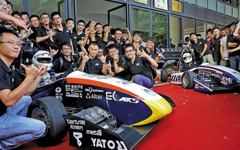 近日,2015中國大學(xué)生電動方程式大賽正式展開,由華南理工大學(xué)機(jī)械與汽車工程學(xué)院大學(xué)生自主設(shè)計和打造、搭載了廣東猛獅電源科技股份有限公司(下文簡稱猛獅科技)動力電池的純鋰電方程式賽車E-Power 15亮相賽場,在大賽中經(jīng)受了直線加速、耐久測試、八字繞環(huán)和高速避障等多個比賽項目的考驗。