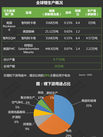 據(jù)有關(guān)數(shù)據(jù)顯示,市場(chǎng)需求的沖擊導(dǎo)致2015年全球供需平衡表出現(xiàn)了9100噸碳酸鋰的短缺。按中國(guó)全年30萬(wàn)輛新能源汽車、歐洲和美國(guó)市場(chǎng)最新銷量重估全年需求,2015年全球新能源汽車對(duì)碳酸鋰需求已爆發(fā)至3.86萬(wàn)噸,較市場(chǎng)普遍預(yù)期暴增1.13萬(wàn)噸。2015年全球碳酸鋰需求預(yù)計(jì)為21.18萬(wàn)噸,同比增速19.64%。除新能源汽車外,工業(yè)級(jí)碳酸鋰需求12.3萬(wàn)噸,3C數(shù)碼消費(fèi)品電池需求5萬(wàn)噸,儲(chǔ)能電池需求1700噸。但由于生產(chǎn)工藝、成本偏高等因素,今年多處產(chǎn)能未能充分釋放,預(yù)計(jì)2015年全球鹽湖/礦山提鋰的總產(chǎn)量?jī)H20.28萬(wàn)噸。2016年-2018年全球碳酸鋰需求預(yù)計(jì)分別為24.42萬(wàn)噸、28.89萬(wàn)噸和34.10萬(wàn)噸,對(duì)應(yīng)增速18.3%、18.0%和19.9%?;鄄┵Y訊分析稱,增長(zhǎng)的動(dòng)力主要來(lái)自新能源汽車,若中國(guó)新能源汽車產(chǎn)量增速維持100%增長(zhǎng),即使考慮動(dòng)力電池能量密度上升,2016-2018年全球新能源汽車碳酸鋰需求還將上升至6.41萬(wàn)噸、9.76萬(wàn)噸和13.67萬(wàn)噸。