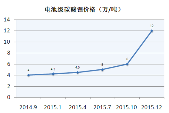 2015年,是鋰電池市場行業(yè)爆發(fā)年,特別是10月份以來,政策的推動等相關(guān)影響,鋰電關(guān)鍵原材料碳酸鋰和六氟磷酸鋰價格也相繼上漲,進入2016年第一周,原材料碳酸鋰價格繼續(xù)保持增長態(tài)勢,截至目前,行業(yè)均價已超過14.5萬/噸。