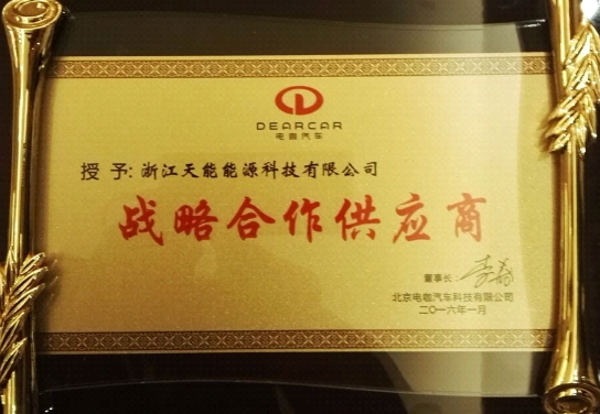 2016年1月26日,北京電咖汽車科技有限公司2015年終盛典在杭州隆重召開,參會人數(shù)近300人,現(xiàn)場氣氛熱烈。會上,電咖汽車對其主要供應(yīng)商、經(jīng)銷商等進行了表彰,香港上市企業(yè)天能動力旗下浙江能源科技有限公司,作為其鋰電池核心供應(yīng)商獲得“戰(zhàn)略合作供應(yīng)商”殊榮,是其上百家供應(yīng)商中獲此殊榮的三大供應(yīng)商之一。