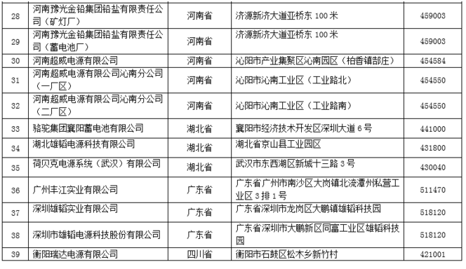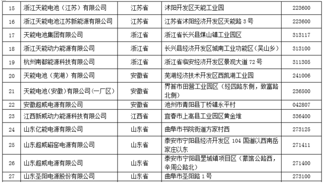 符合《鉛蓄電池行業(yè)規(guī)范條件(2015年本)》企業(yè)名單(第一批)