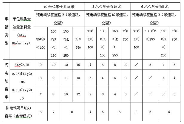 二、 純電動、插電式混合動力(含增程式)等客車推廣應用補助標準(單位:萬元/輛)