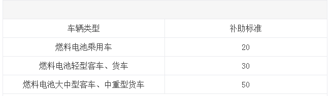 四、 燃料電池汽車推廣應(yīng)用補助標準(單位:萬元/輛)