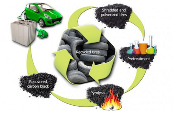 舊輪胎會(huì)被投入巨大的工業(yè)粉碎機(jī)進(jìn)行粉碎,科學(xué)家們這些碎橡膠的漿料被預(yù)處理后進(jìn)行熱分解。最后得到的就是炭黑。研究顯示,炭黑用于制造鋰電池的正極,比石墨更為高效。