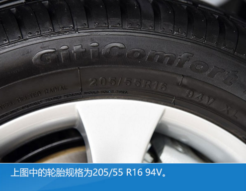 其中205表示輪胎的寬度為205mm,55表示輪胎的斷面高度與寬度的百分比為55%,即輪胎的扁平比,R代表單詞RADIAL,表示是子午輪胎,16表示輪輞的直徑為16英寸,94表示單個輪胎載重指數(shù),V則表示輪胎的許用車速等級。