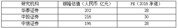 目前,已有多家機構(gòu)發(fā)布研報對珠海銀隆作出估值,如華泰證券給出的202億元,中投證券的216億元,中信證券的196億元等,均遠(yuǎn)超出130億。除華泰證券估值假設(shè)銀隆2016年凈利潤為7億元外,其他機構(gòu)都估值假設(shè)為7.2億元。