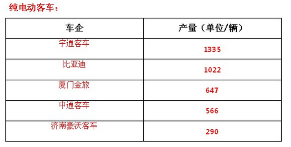 另外,純電動(dòng)客車方面,1月純電動(dòng)客車的產(chǎn)量為2135輛,2月產(chǎn)量?jī)H為975輛,3月純電動(dòng)客車產(chǎn)量為3155輛,4月純電動(dòng)客車產(chǎn)量為8746輛,5月純電動(dòng)客車產(chǎn)量為7094輛,6月純電動(dòng)客車產(chǎn)量為8153輛,7月純電動(dòng)客車產(chǎn)量為3394輛,8月純電動(dòng)客車產(chǎn)量為6296輛。