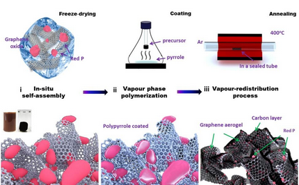針對上述問題,澳大利亞伍倫貢大學(xué)(University of Wollongong, UOW)郭再萍(Zaiping Guo)教授和陳俊(Jun Chen)副教授課題組提出了一種新型的氣化重組技術(shù),制備出碳/紅磷/石墨烯氣凝膠三維多孔復(fù)合材料。