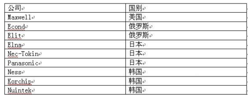 國外研究超級電容器起步較早,技術(shù)相對成熟,處于領(lǐng)先地位。美國的USMSC計(jì)劃、日本的New Sunshine計(jì)劃和歐洲的PNGU計(jì)劃均將超級電容器列入開發(fā)內(nèi)容。