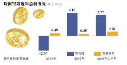 查閱格力電器此前發(fā)布的重組方案可知,珠海銀隆2014年、2015年、2016年上半年度凈利潤分別為-26577.61萬元、41602.08萬元及37727.68萬元。然而,在這背后,是公司對政府補助的較大依賴,上述報告期內(nèi)政府補助分別高達(dá)4789.36萬元、3513.17萬元和7764.09萬元。