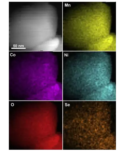 實驗中Quanxin Ma首先利用共沉淀法合成了Mn、Co、Ni和Se元素的氫氧化物前驅(qū)體,然后在120℃下真空干燥24h,然后與LiOH?H2O進(jìn)行混合和球磨,然后在850℃下焙燒20h合成了具有不同的Se摻雜量的Li1.2[Mn0.7Ni0.2Co0.1]0.8_xSexO2材料。
