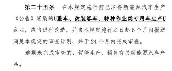 說(shuō)到這里造車資質(zhì)10個(gè)指標(biāo)的謠言便不攻自破了。首先工信部的文件里并沒有明確說(shuō)明只有10個(gè)指標(biāo)。其次,《意見稿》第二十五條明確規(guī)定,之前取得新能源資質(zhì)的車企應(yīng)該在2年內(nèi)完成審查工作。