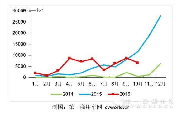 2016年1-10月純電動客車市場產(chǎn)量一覽