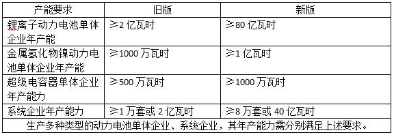 第二,產(chǎn)能要求極其大幅提高。新版規(guī)定,鋰離子動(dòng)力電池單體企業(yè)年產(chǎn)能力不低于80億瓦時(shí),金屬氫化物鎳動(dòng)力電池單體企業(yè)年產(chǎn)能力不低于1億瓦時(shí),超級(jí)電容器單體企業(yè)年產(chǎn)能力不低于1千萬(wàn)瓦時(shí)。系統(tǒng)企業(yè)年產(chǎn)能力不低于80000套或40億瓦時(shí)。生產(chǎn)多種類型的動(dòng)力電池單體企業(yè)、系統(tǒng)企業(yè),其年產(chǎn)能力需分別滿足上述要求。