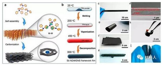 (a)限域超組裝氣相沉積法中金屬-碳骨架復(fù)合膜形成機(jī)制示意圖;