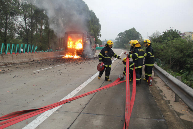 嚇人,深圳高速一滿載“4噸手機電池”大貨車突著大火