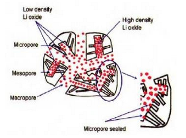 圖4:反應產物(Li2O和Li2O2在碳化物孔徑中的分布示意圖