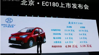 北汽EC180正式上市 售價4.98-5.58萬元