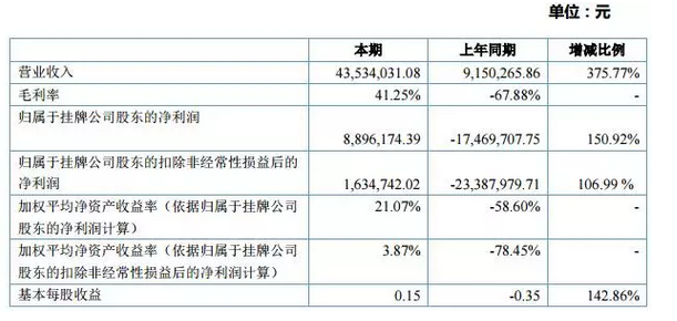 2016年度公司主要收入來源為銷售濕法鋰電池隔膜和涂層隔膜,實(shí)現(xiàn)營業(yè)收入 4353.40 萬元,較上年同期增長 375.77%;公司凈利潤 889.62 萬元,較上年同期增加 2636.59 萬元。
