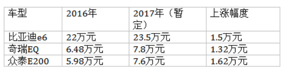 第三類,以眾泰、吉利為代表的車企暫時(shí)維持2016年價(jià)格銷售,但數(shù)量有限,也有漲價(jià)的可能。眾泰銷售商表示,E200目前還是維持5.98萬元,但2月15日后價(jià)格可能會(huì)上漲1.8萬元左右。帝豪EV 也是以12.98萬元維持現(xiàn)價(jià),據(jù)經(jīng)銷商介紹,“吉利目前在售車型都為去年車源,庫房也只有20多輛了。因?yàn)閮r(jià)格不定,各店都沒有上貨,一旦2月北京新能源小客車指標(biāo)下來,3月可能會(huì)出現(xiàn)漲價(jià)熱潮,甚至無車可售。”記者聯(lián)系帝豪EV內(nèi)部人員時(shí)亦表示具體價(jià)格還在商議中。