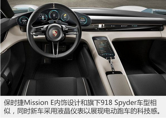 保時捷Mission E內(nèi)飾設(shè)計偏向于最新設(shè)計語言,新車采用更多液晶儀表,同時觸摸按鍵取代之前車型的物理按鍵。保時捷Mission E整車由碳纖維、鋼材以及增強型聚酯纖維打造,并將全新鋰離子電池組安裝在車身地板下方。