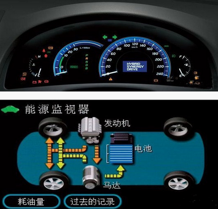 第六代混合動力凱美瑞的儀表和中控臺上液晶屏中的能量轉(zhuǎn)換顯示