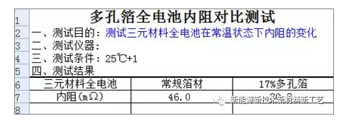 同等箔材做的對比顯示,同時(shí)使用用沖孔銅箔與鋁箔可有效降低內(nèi)阻8%~20%。