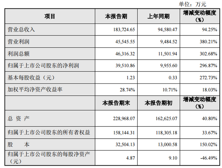 天賜材料(002709)公告,公司預(yù)計(jì)2016年實(shí)現(xiàn)營(yíng)業(yè)收入183,724.65萬(wàn)元,較上年同期增長(zhǎng)94.25%;報(bào)告期內(nèi),公司實(shí)現(xiàn)營(yíng)業(yè)利潤(rùn)45,545.55萬(wàn)元,較上年同期增長(zhǎng)380.21%,利潤(rùn)總額46,316.32萬(wàn)元,較上年同期增長(zhǎng)302.68%,歸屬于上市公司股東的凈利潤(rùn)39,510.86萬(wàn)元,較上年同期增長(zhǎng)296.87%。
