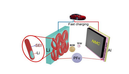 研究人員嘗試將已在鋰離子電池中使用的鹽——六氟磷酸鋰(LiPF6,lithium hexafluorophosphate)添加到快速充電電解液中,配置成一款全新的電解液,同時還采用了鋰陽極和鋰鎳錳鈷氧化物,于是一款快速、高效、高電壓電池就誕生了。