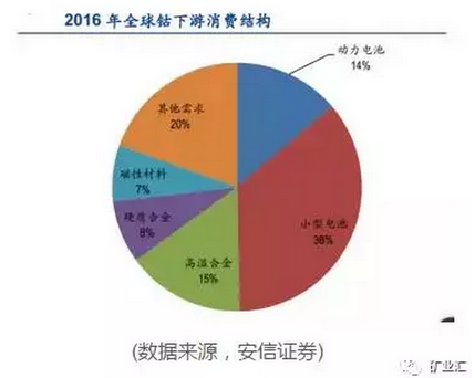 雖然我國(guó)鈷產(chǎn)量少,但是目前中國(guó)卻是全球最大的鈷消費(fèi)國(guó),主要原料全靠進(jìn)口。在全球10萬(wàn)噸的產(chǎn)量中,中國(guó)消費(fèi)至少占了一半。而從具體行業(yè)來(lái)看,電動(dòng)新能源汽車中的電池行業(yè)是推動(dòng)全球鈷消費(fèi)增長(zhǎng)的主要驅(qū)動(dòng)力。