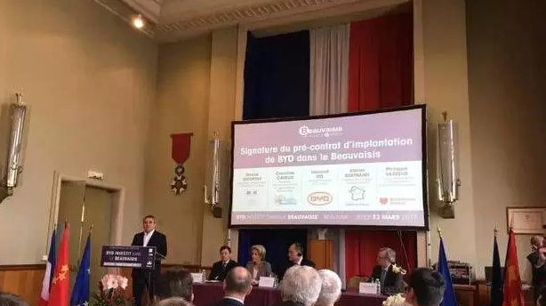 近日,比亞迪同法國北部地區(qū)、巴黎盆地北側(cè)的博韋(Beauvais)市舉行了建廠簽約儀式。
