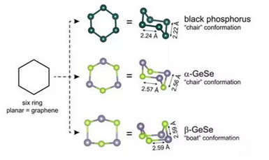 α-硒化亞鍺在自然界含量豐富,有研究人員評估認為,其具有與黑磷相同的電學(xué)特性。普林斯頓大學(xué)團隊在最新研究中,在6萬大氣壓下將α-硒化亞鍺加熱到1200℃,結(jié)果發(fā)現(xiàn),其不僅能像黑磷一樣演變成“椅子”狀立體結(jié)構(gòu),更有一部分演變成令人驚奇的“船”形結(jié)構(gòu)。論文第一作者法比安·凡·羅爾認為,不同結(jié)構(gòu)決定了這些化合物的不同電學(xué)性能。與標準“椅子”形黑磷和α-硒化亞鍺相比,“船”形β-硒化亞鍺因?qū)娱g距離更小,層狀結(jié)構(gòu)會更加穩(wěn)定,電學(xué)性能更勝一籌。