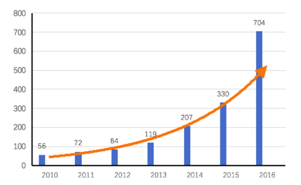 圖2每年新增石墨烯企業(yè)數(shù)量情況