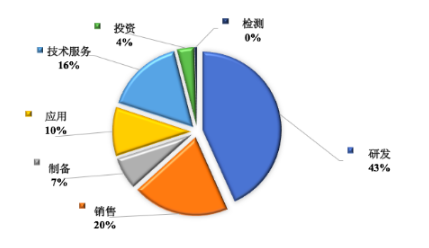 從全國石墨烯企業(yè)細分行業(yè)分布情況我們可以發(fā)現(xiàn),目前企業(yè)主要集中于石墨烯研發(fā)、應用、銷售、技術服務以及制備,在石墨烯檢測方面全國僅有9家。