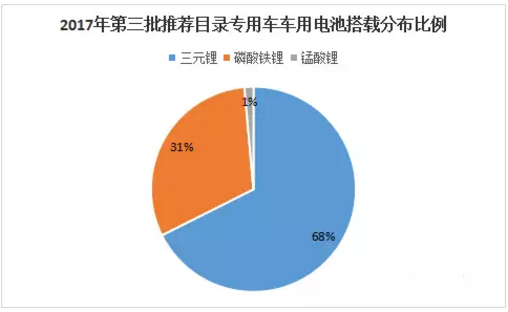 綜合三批目錄來看,三元電池車型數(shù)量占比已從2017年第1批目錄的67.12%上升至第3批目錄的89.47%。在乘用車上選用三元電池,已成為業(yè)界共識,預計未來三元電池在乘用車領域的比重將進一步加大。