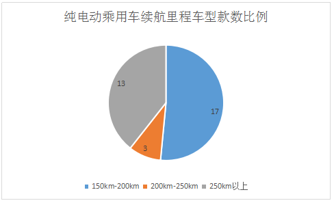 在33款純電動乘用車車型中,能量密度在90Wh/kg-120Wh/kg的車型共有15款,在120Wh/kg以上的車型共有18款。純電動乘用車?yán)m(xù)航里程均在150km以上,其中續(xù)航里程在150km-250km之間的車型有20款,在250km以上的車型有13款。從電池能量密度和續(xù)航里程來看,第三批推薦目錄中能夠拿到1.1倍補貼的純電動乘用車占比超過50%,續(xù)航里程在200km以下的車型有14款,在250km以上的車型有13款,整體趨勢向高低兩端靠攏。在插電式混合動力乘用車方面,續(xù)航里程主要分布在60km-80km之間。在38款新能源乘用車車型中,有34款車搭載的動力電池為三元鋰電池,占比近90%。