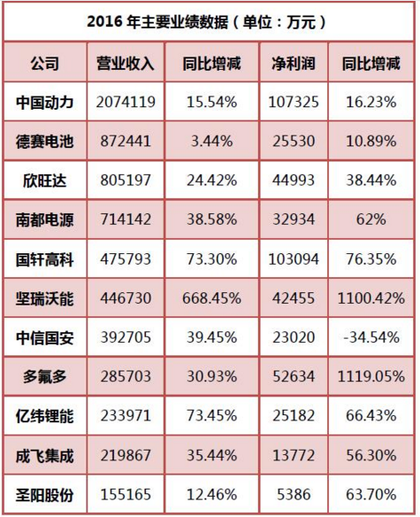 綜合來看,2016年鋰電池上市企業(yè)在營業(yè)收入和凈利潤上普遍實(shí)現(xiàn)了兩位數(shù)的增長。