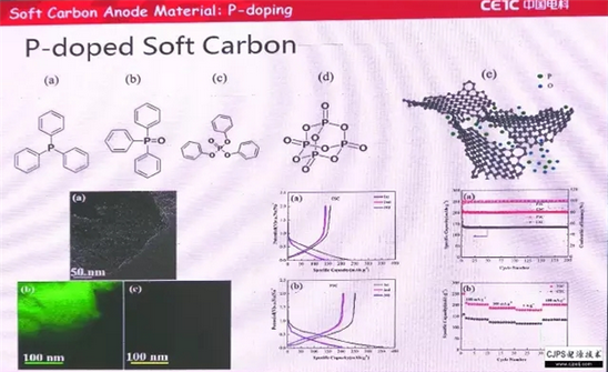 鈉離子電池和鋰離子電池的反應(yīng)機理相近,正極材料除了磷酸鹽或氟化磷酸鹽以外,還可以用鎳錳層狀過渡金屬氧化物。在負(fù)極材料方面可選擇碳類、合金和化合物。在三大類負(fù)極材料中,我們還是選擇最便宜的碳材料。我們對于負(fù)極碳材料又進行了軟碳、硬碳和石墨烯三個分類的研究。