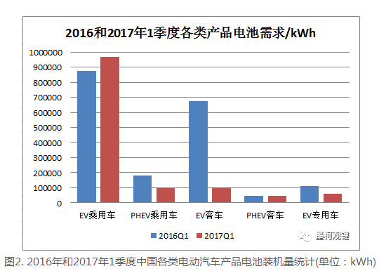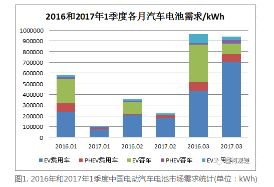 一、2017年1季度汽車電池需求同比有較大幅度下降