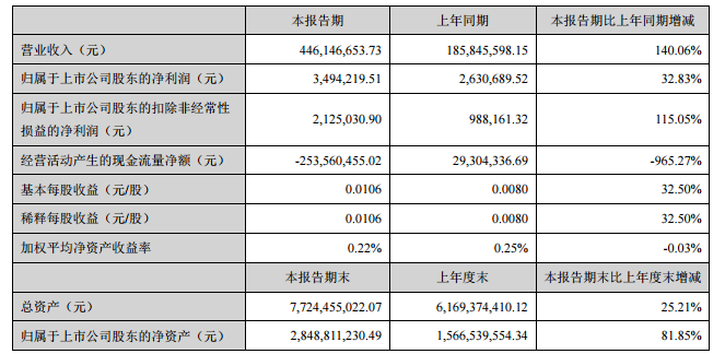 猛獅科技近日發(fā)布一季度財(cái)報(bào),報(bào)告期內(nèi)公司營(yíng)業(yè)收達(dá)4.46億,相比去年同期的1.85億同比增長(zhǎng)140.06%。