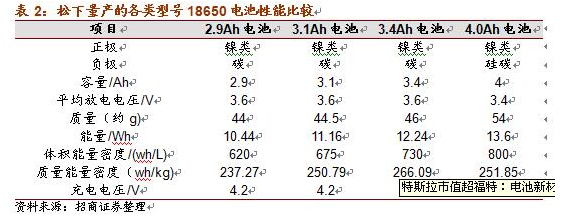 日本松下2012年發(fā)布的最新NCR18650C型號電池,容量高達4000mah,并于2013年實現(xiàn)量產(chǎn)。當前國內(nèi)主流的18650圓柱電池容量主要在2800mah以內(nèi)(大部分為2600mah及以下,國內(nèi)只有部分企業(yè)實現(xiàn)2800mah的18650電池的量產(chǎn)),但是松下之所以能夠做到4000mah,主要是其在負極中使用了硅的混合材料。據(jù)松下介紹,該NCR18650C型號電池可以在循環(huán)500次以后,依然保持80%以上的電池儲電能力。