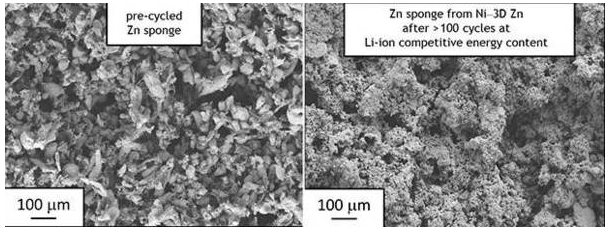 鋅電池的陰極由鎳制成。實(shí)驗(yàn)表明,電池可以承受5萬(wàn)次充放電,壽命跟混合動(dòng)力車的鉛酸電池相仿,而鋅電池的單位體積儲(chǔ)能和單位質(zhì)量?jī)?chǔ)能都高于鉛酸電池。