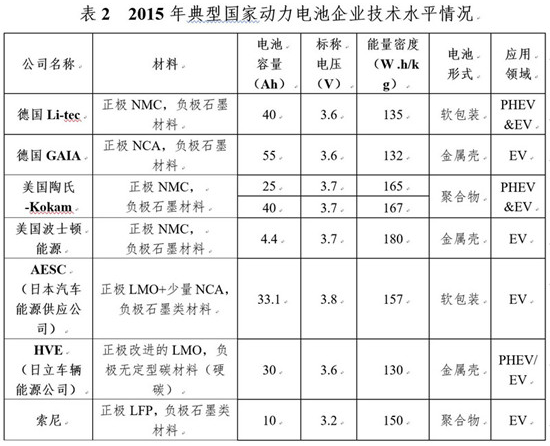 從美、日、德三國2015年的技術(shù)水平來看,動力電池能量密度平均水平為150 Wh/kg左右,以美國波士頓180 Wh/kg為最高。