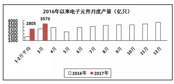 電子元件行業(yè)生產(chǎn)加快。一季度,生產(chǎn)電子元件9094億只,同比增長(zhǎng)4%。出口交貨值同比增長(zhǎng)11.4%,其中3月份增長(zhǎng)17.6%。