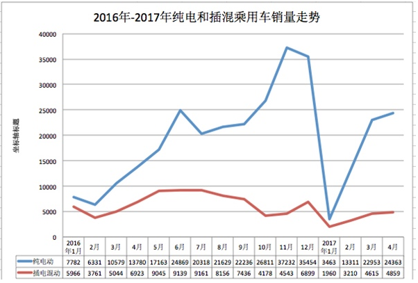 根據(jù)乘聯(lián)會(huì)數(shù)據(jù),2017年4月新能源乘用車銷量達(dá)到2.92萬(wàn),環(huán)比增長(zhǎng)6%,同比增速41%。相比前三月每月1萬(wàn)左右的增長(zhǎng)量,4月新能源乘用車銷量環(huán)比增長(zhǎng)放緩到0.17萬(wàn)臺(tái)。崔東樹表示,2017年1月0.54萬(wàn)臺(tái)體現(xiàn)了市場(chǎng)對(duì)政策補(bǔ)貼的極度依賴,隨著第一批目錄的發(fā)布,2月新能源車市場(chǎng)產(chǎn)銷大幅高于1月的3倍也是較合理的。而3月的新能源乘用車延續(xù)月遞增1.1萬(wàn)的加速上升態(tài)勢(shì)是北京等的增量。4月的增長(zhǎng)仍屬較快增長(zhǎng)態(tài)勢(shì)。