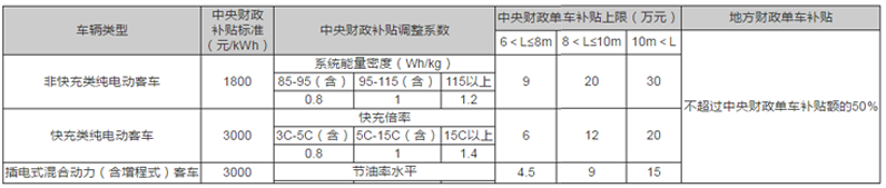關(guān)于新能源客車的補(bǔ)貼標(biāo)準(zhǔn)更改為補(bǔ)貼金額=車輛帶電量x 單位電量補(bǔ)貼標(biāo)準(zhǔn)x 調(diào)整系數(shù)(調(diào)整系數(shù):系統(tǒng)能量密度/充電倍率/節(jié)油水平),具體如下: